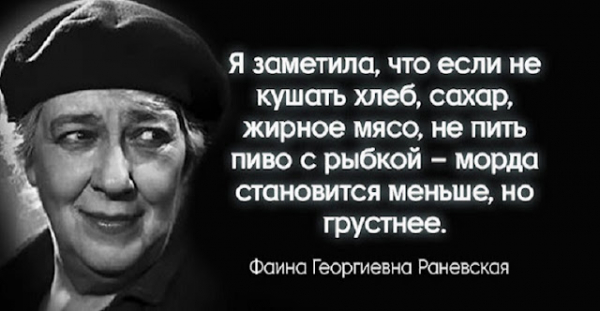 32. Я заметила, что если не кушать хлеб, сахар, жирное мясо, не пить пиво с рыбкой – морда становится меньше, но грустнее.