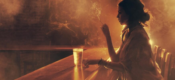 она допивает колу, в которой бренди,